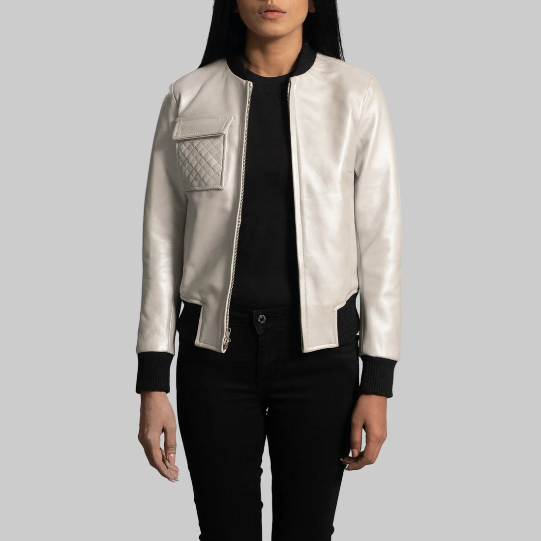 Lana Silver Leather Bomber Jacket
