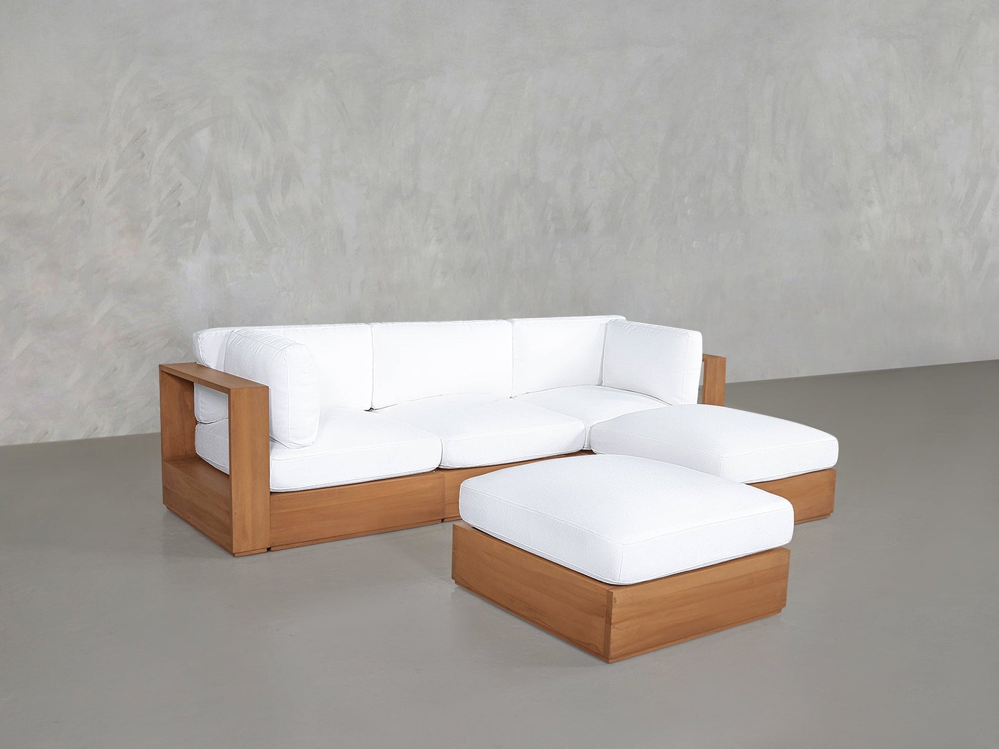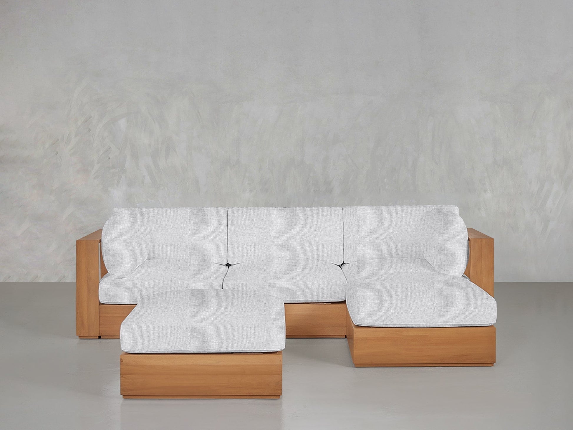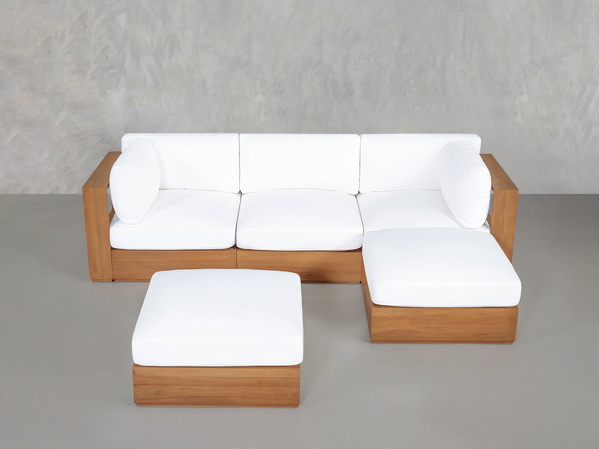 4-Seat Modular Chaise Sectional with Ottoman Teak Outdoor