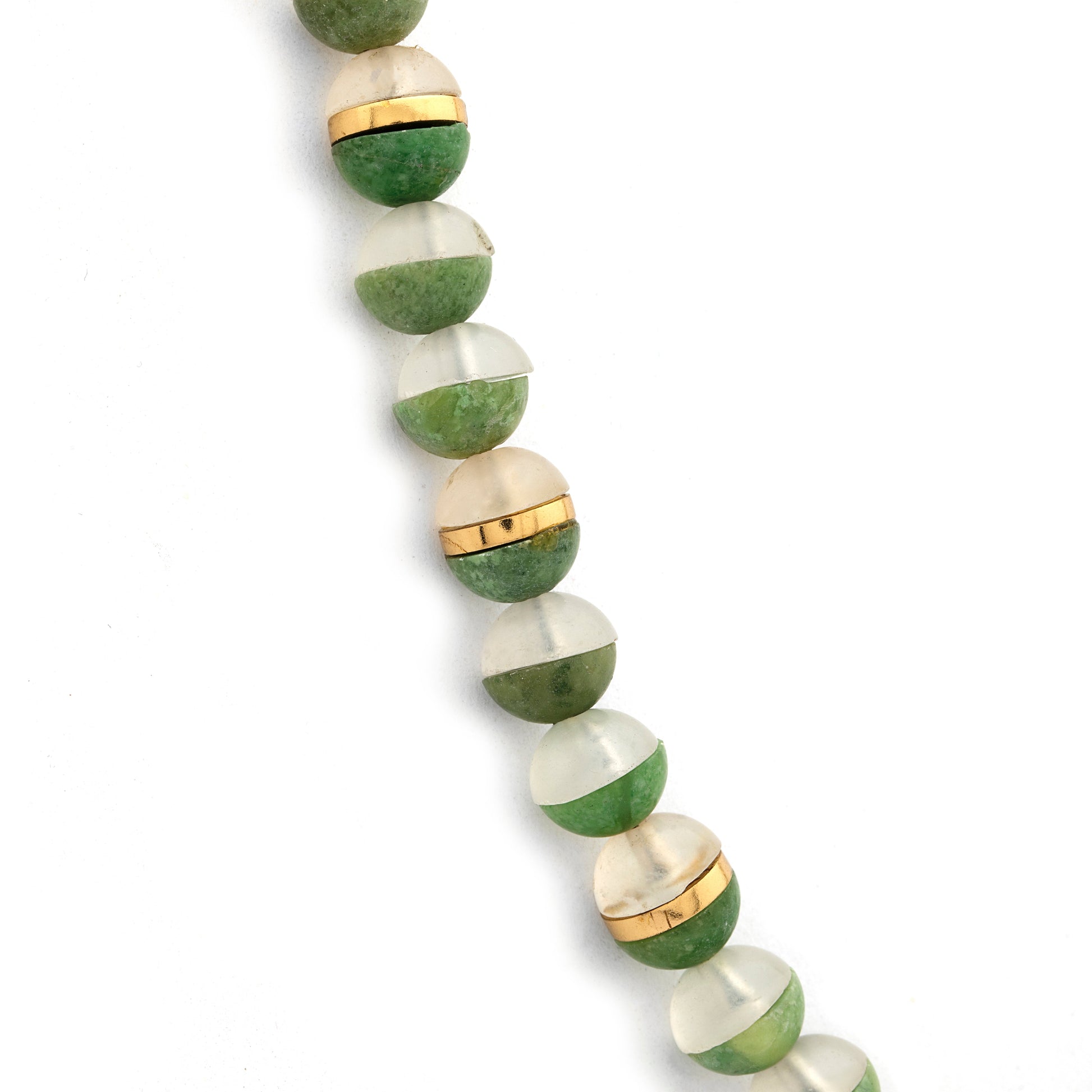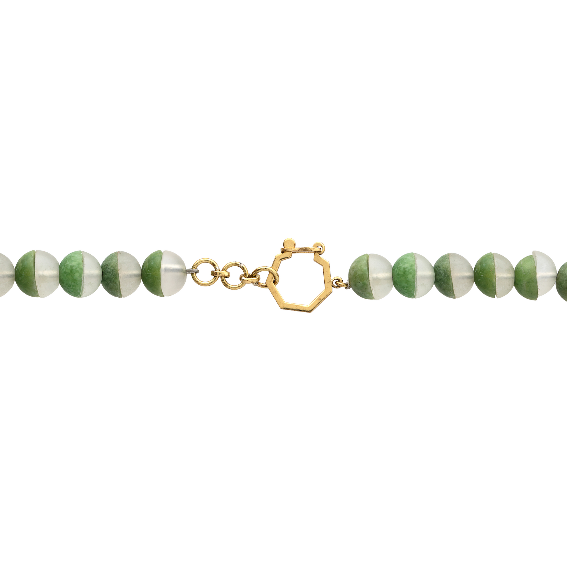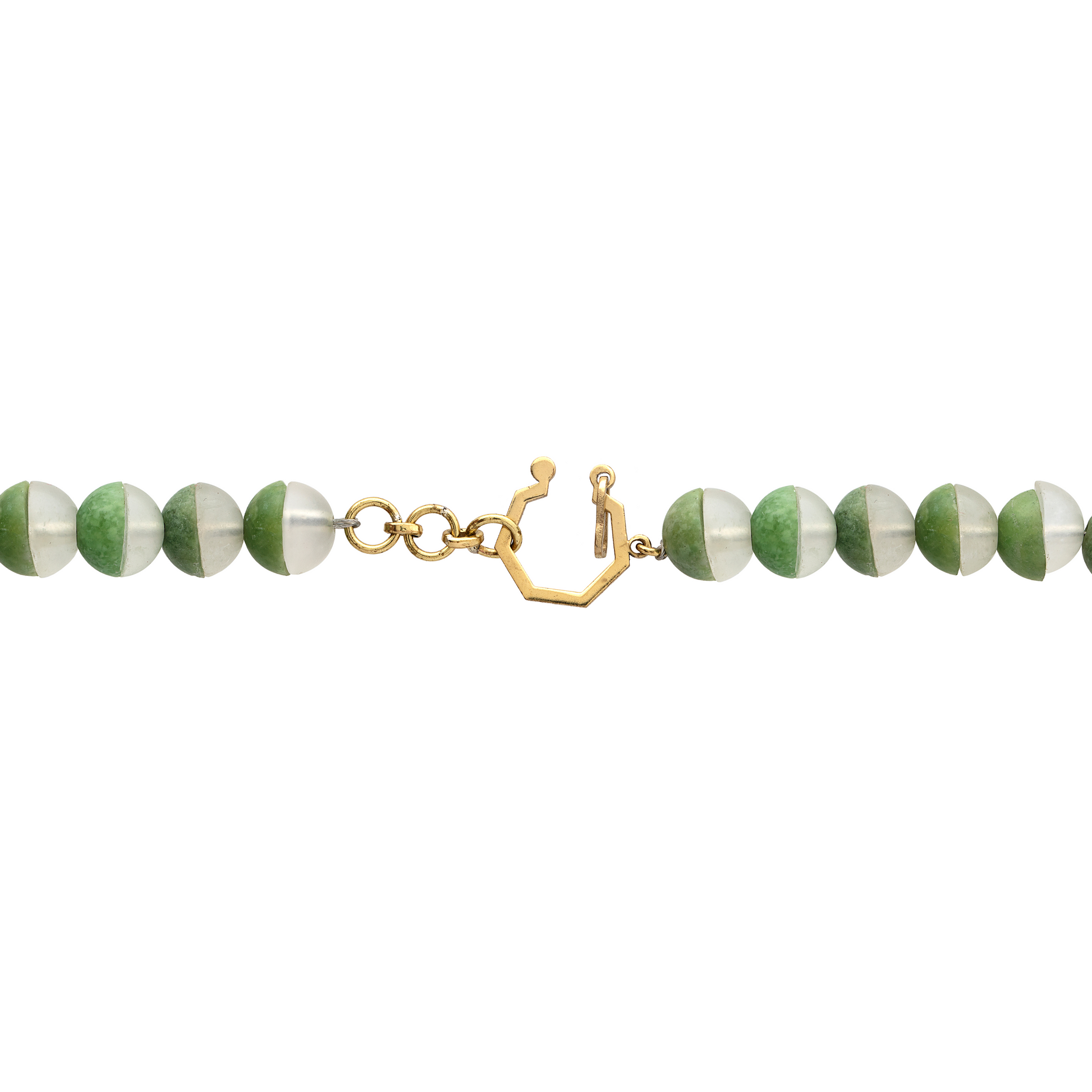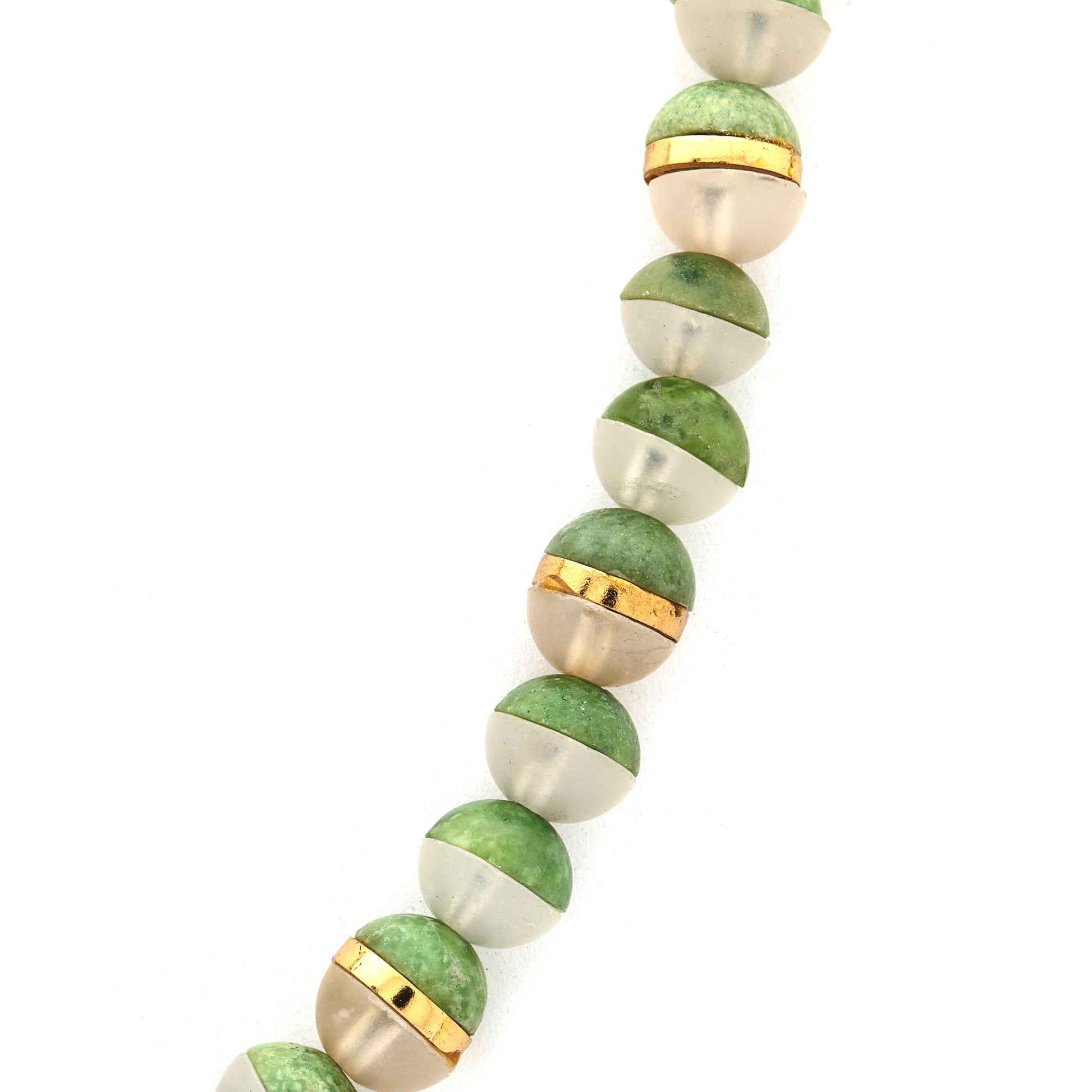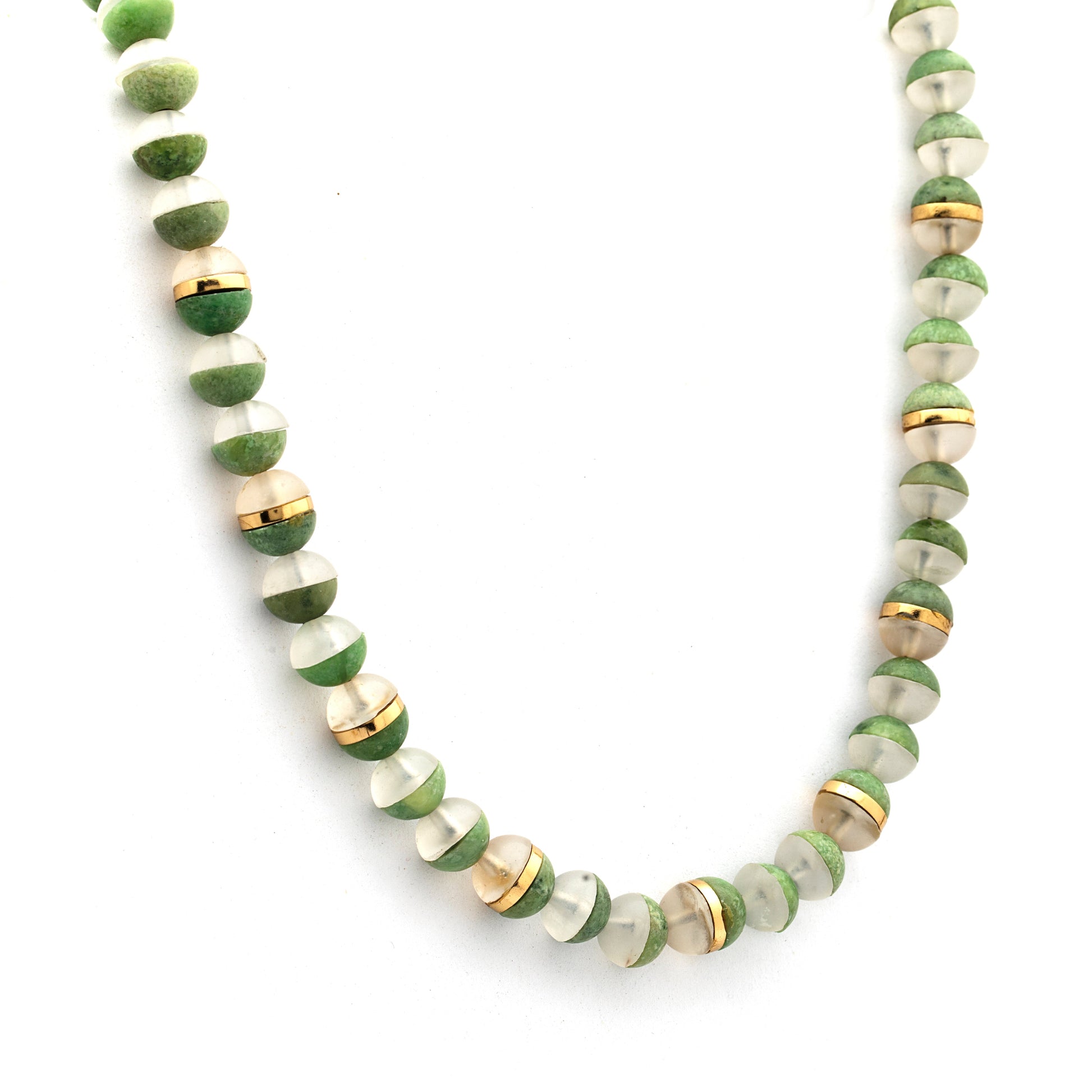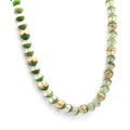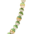 Indulge in the exquisite allure of our necklace, where the vibrant green idocrase from Pakhtunkhwa harmoniously blends with the serene milky quartz from Chilas, Gilgit-Baltistan. Experience the benefits of idocrase, believed to enhance positivity and creativity, and milky quartz, renowned for its calming qualities. This beautifully designed necklace features idocrase beads seamlessly fused with milky quartz beads, creating an aesthetically pleasing masterpiece. Immerse yourself in the beauty of gemstone jewelry from Pakistan with this unique creation.
